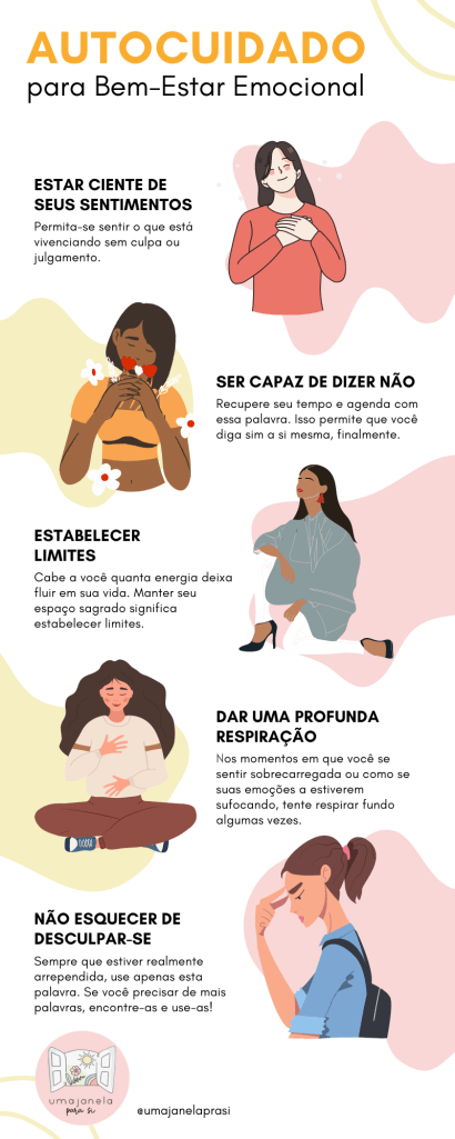 Receba com afeto esses infográficos cheios de dicas e sugestões para promover sua saúde emocional.