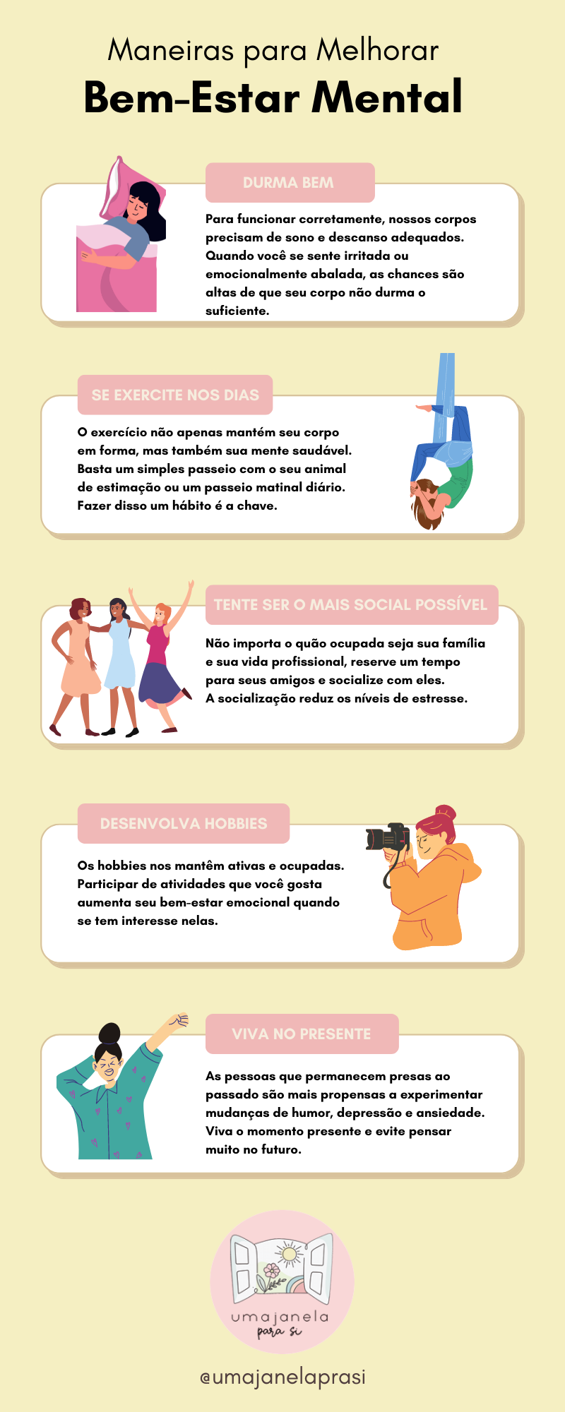 Receba com afeto esses infográficos cheios de dicas e sugestões para praticar saúde e bem-estar no dia a dia.